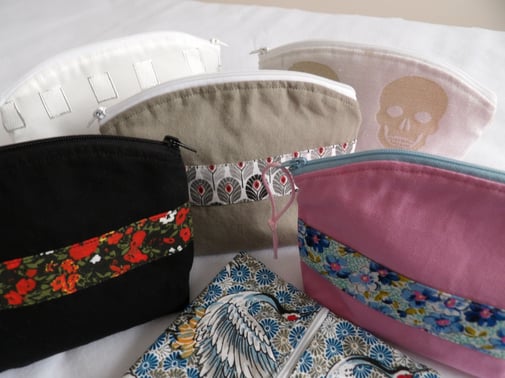 Vous trouverez ici toutes sortes de petites pochettes et trousses à glisser dans votre sac à main , trousse de toilette. Pour votre maquillage, vos papiers ,médicaments, ou pour tout ce que vous voulez!